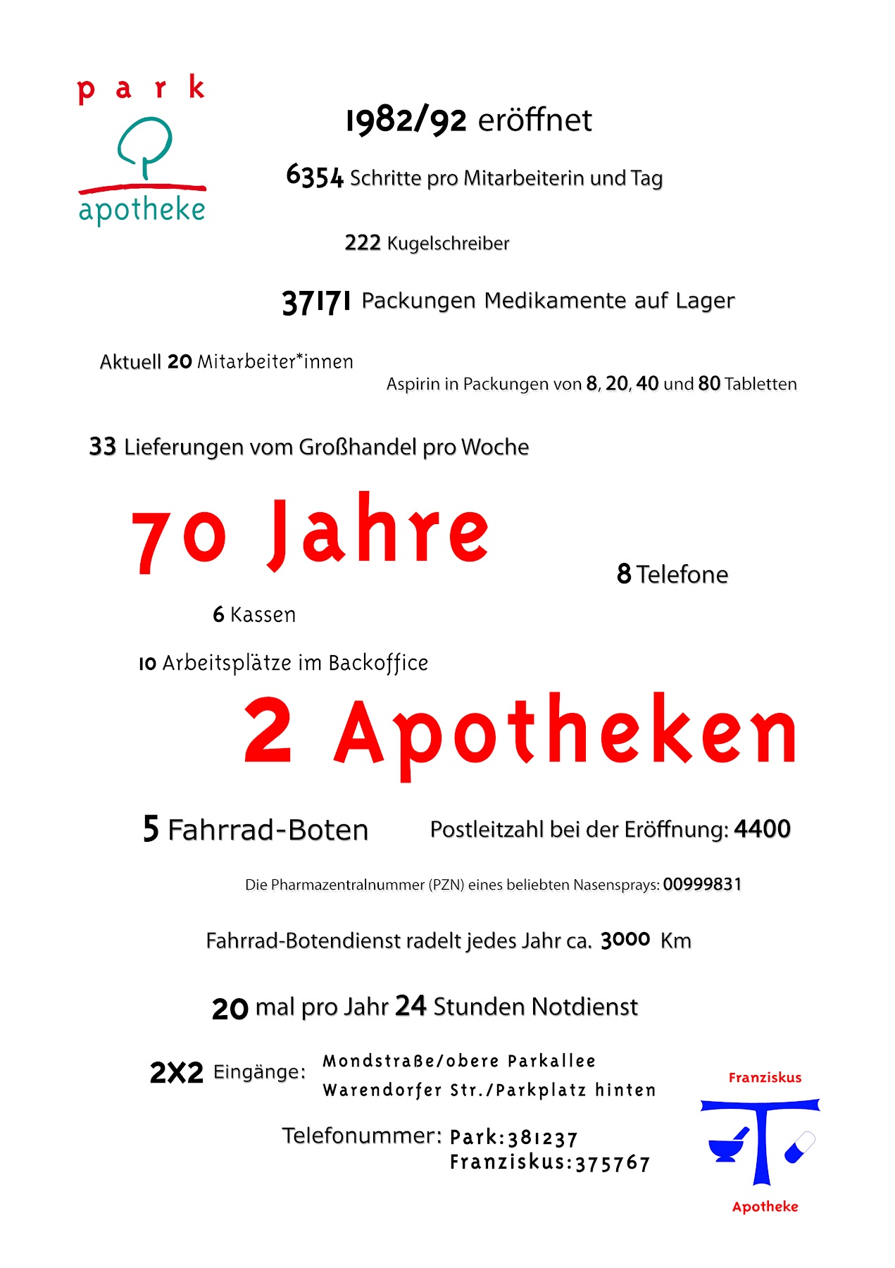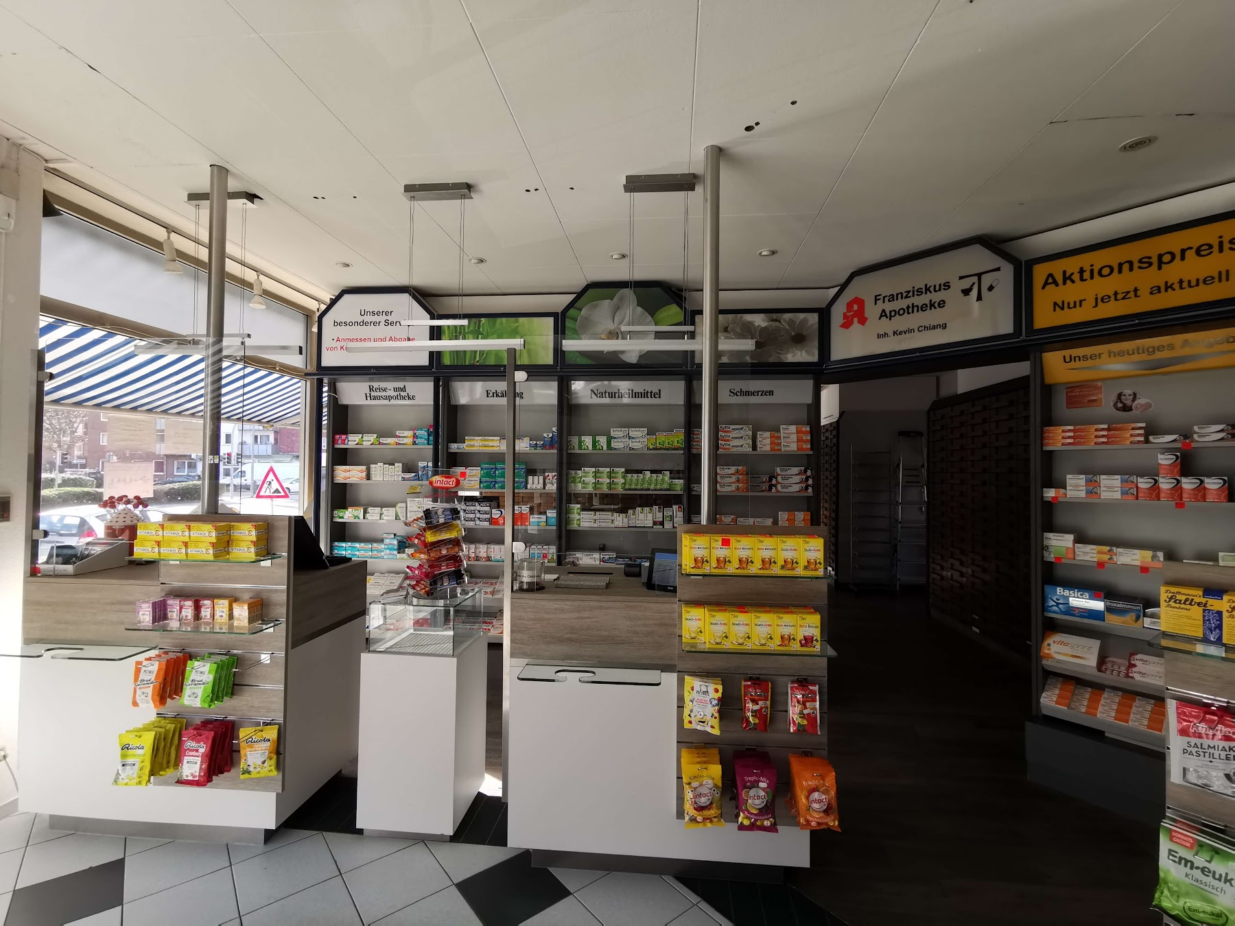 Die Franziskus-Apotheke in Münster ist Ihre Apotheke mit Herz. Unser Ziel ist es, Ihnen benötigte Medikamente rasch und wohnortnah zur Verfügung zu stellen. Neben der Versorgung mit Arzneimitteln erstreckt sich unser Service vor Ort auch über die ausführliche Beratung zu Hilfsmitteln, zum Thema Homöopathie, zur Ernährung und rund um das Wohl Ihres Kindes.