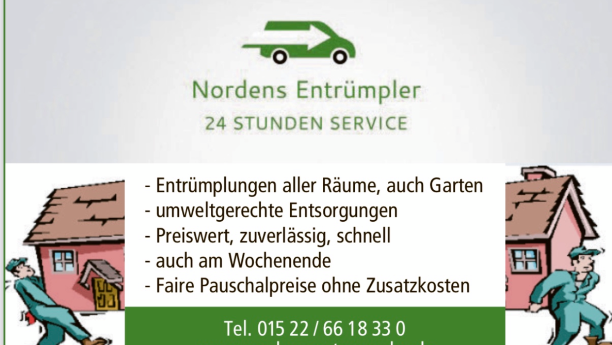 Seit der Gründung von Nordens Entrümpler ist das Team für seinen tollen Service, Professionalität und Effizienz bekannt. Ganz gleich, welchen Service Sie suchen, bei uns finden Sie das Richtige!